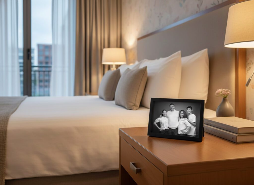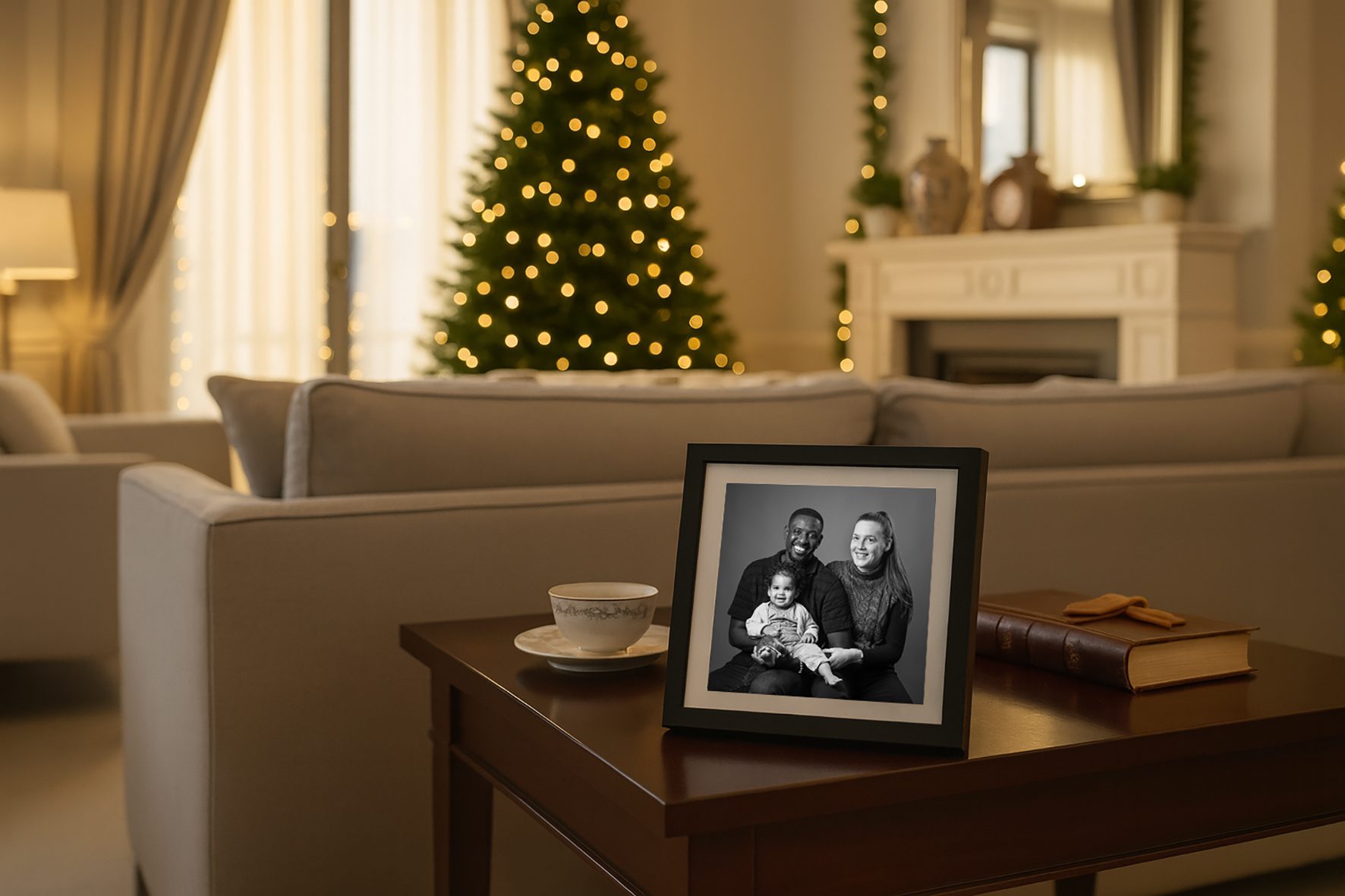 En 10 minutes seulement, repartez avec un ou quatre portraits noir et blanc, un cadeau concret, local et élégant, prêt à être placé sous le sapin.