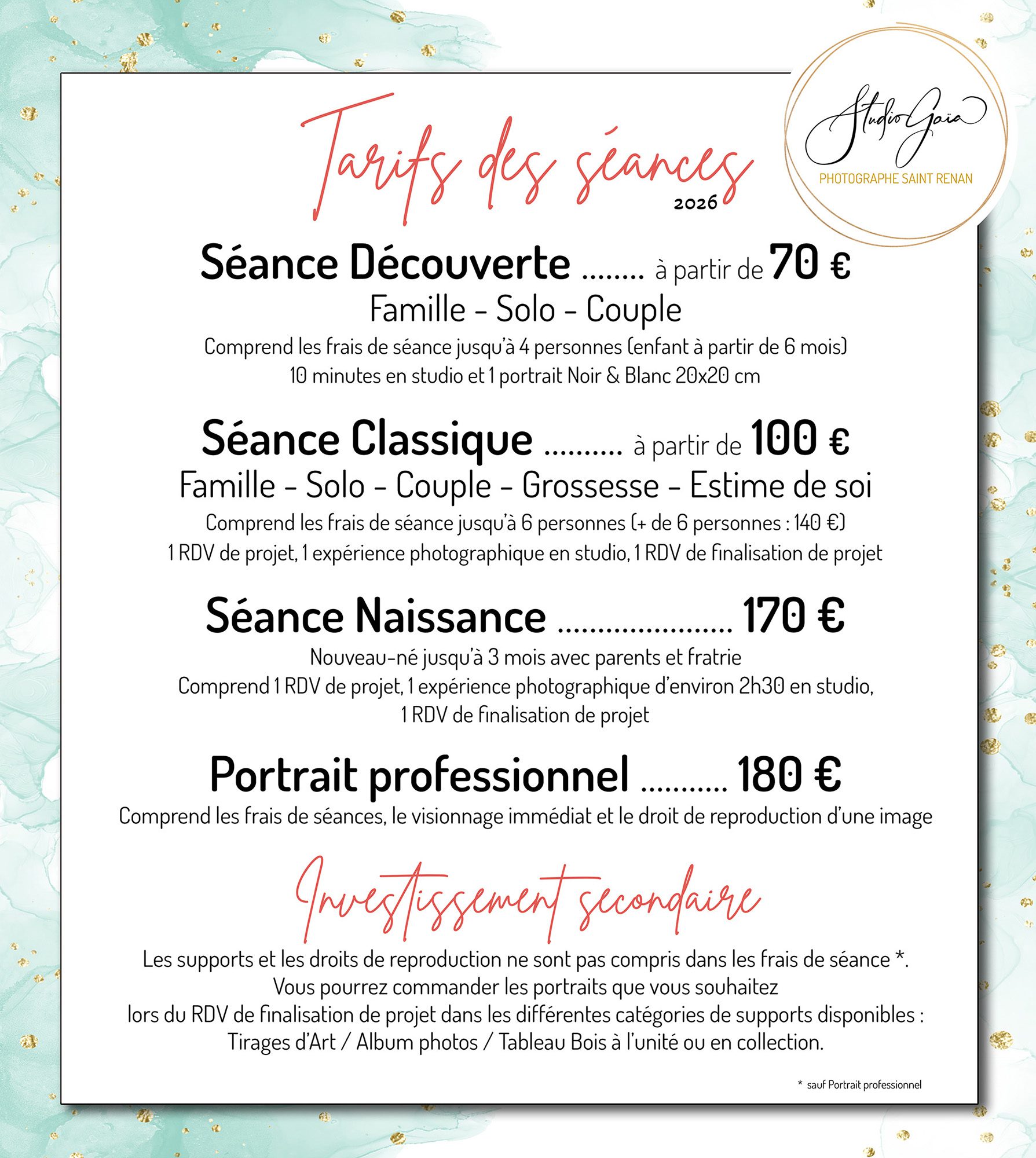 A l’issue de votre séance, nous nous reverrons au studio pour le RDV de finalisation de projet.
